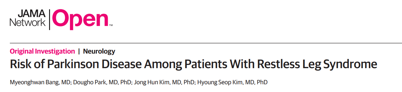 Bang M, Park D, Kim JH, Kim HS. Risk of Parkinson Disease Among Patients With Restless Leg Syndrome. JAMA Netw Open. 2025;8(10):e2535759. Published 2025 Oct 1. doi:10.1001/jamanetworkopen.2025.35759