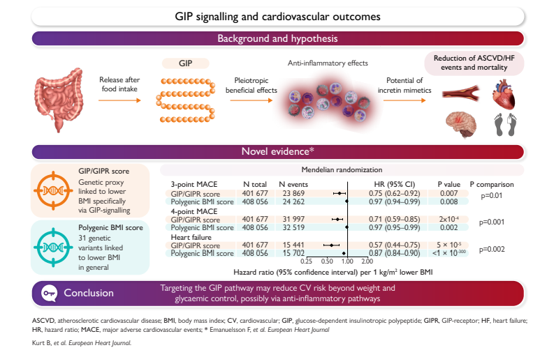 Eur Heart J:GIP信号通路对心血管结局的影响超出体重控制