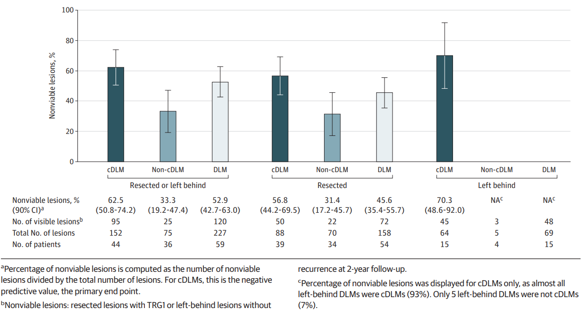图:针对DLMs、cDLMs及非cDLMs非存活病灶的百分比