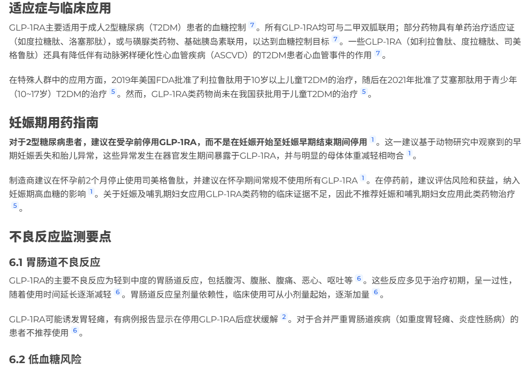 - 实测示例:“GLP-1RA全维度信息,包含适应症、妊娠期用药、不良反应监测要点”