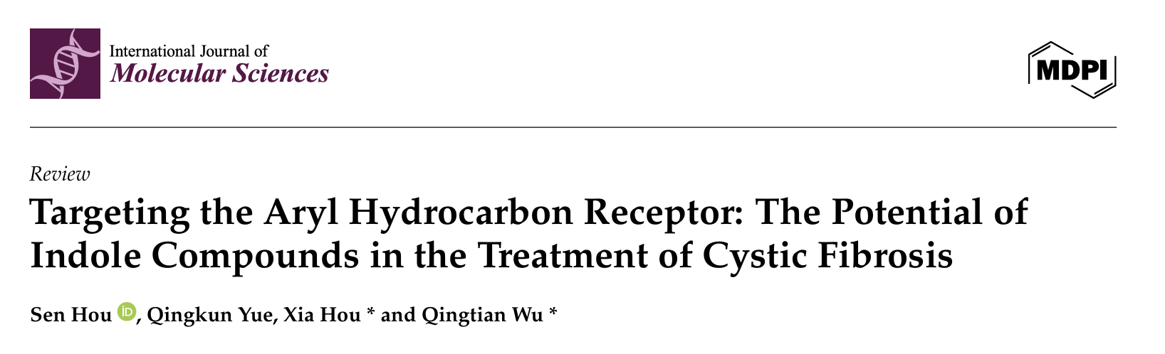 Hou, S.; Yue, Q.; Hou, X.; Wu, Q. Targeting the Aryl Hydrocarbon Receptor: The Potential of Indole Compounds in the Treatment of Cystic Fibrosis. Int. J. Mol. Sci. 2025, 26, 9876.